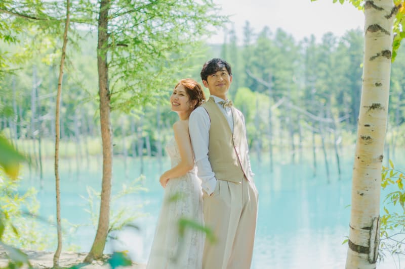 白樺とのコントラストが美しい青い池で、ぜひウエディングフォトを撮影してみてはいかがでしょうか??