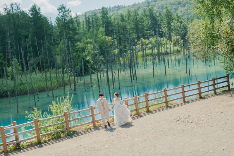 白樺とのコントラストが美しい青い池で、ぜひウエディングフォトを撮影してみてはいかがでしょうか??