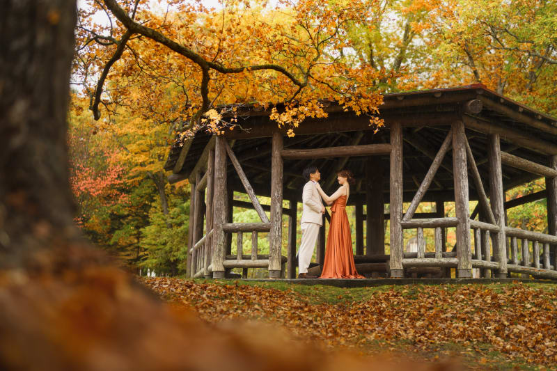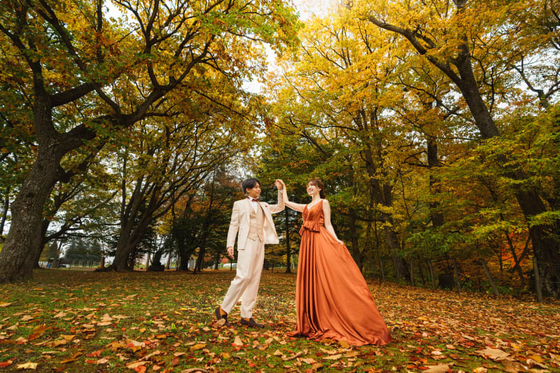 美瑛・富良野の紅葉で、季節感たっぷりのウエディングフォト!!