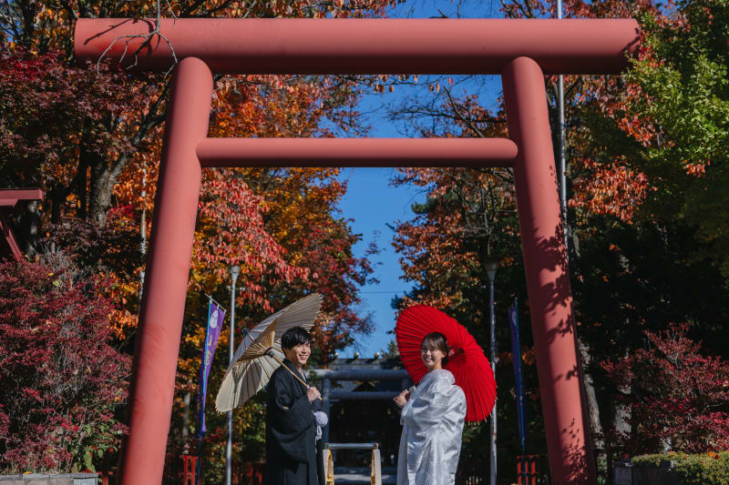 美瑛での撮影は洋装での撮影も多いですが、和装での撮影にぴったりな神社でも写真を残すことができちゃうんです!!