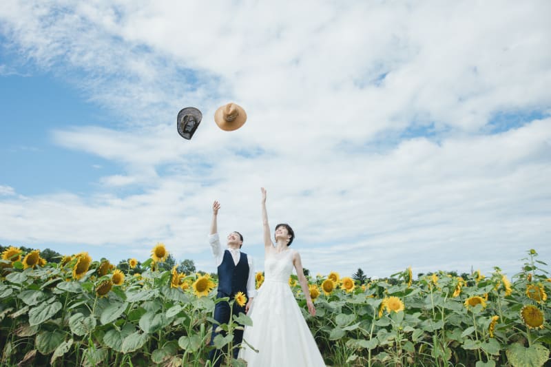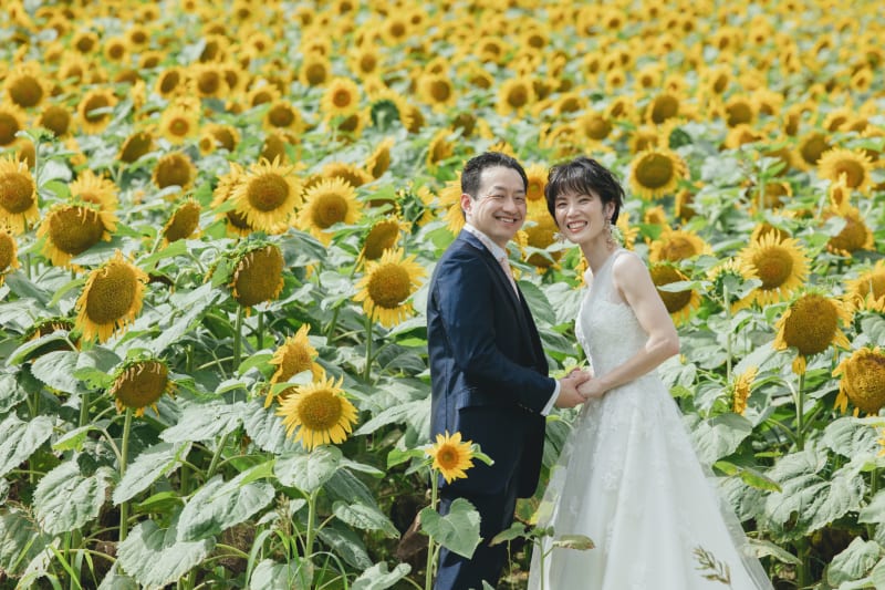 日本最大級のひまわり畑で特別なウエディングフォトの撮影になること間違いなしです✨
