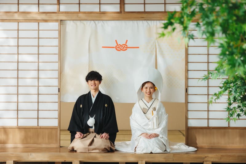 笑顔が魅力のふたり、和の美しさを感じるウェディングフォト