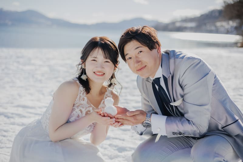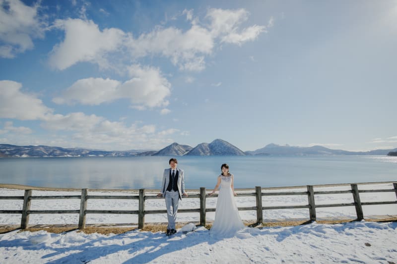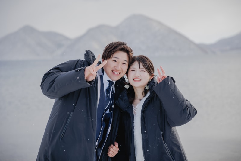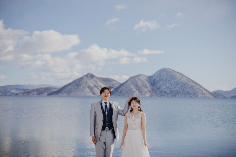 洞爺湖での特別な一日、笑顔溢れるウェディングフォト撮影