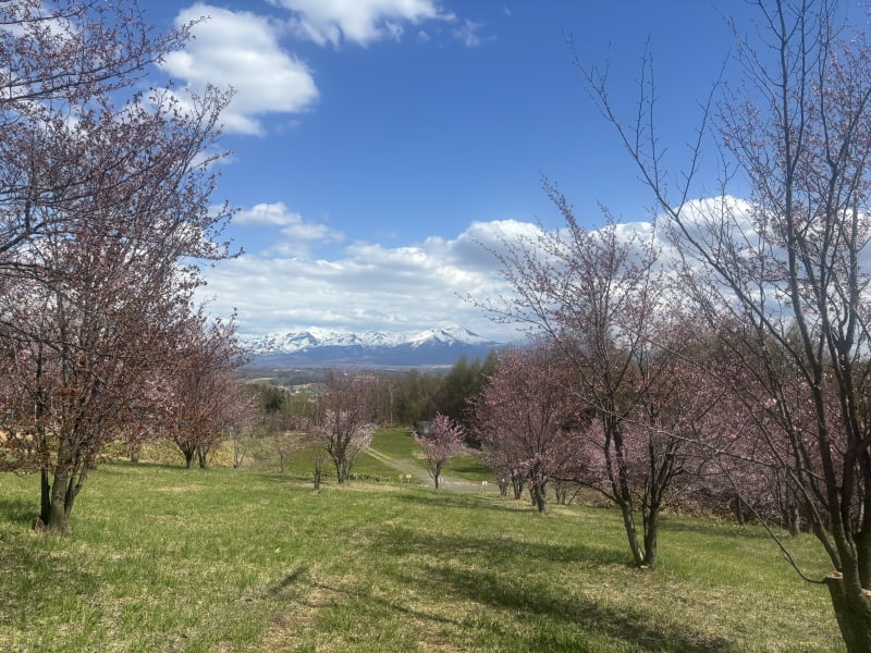 例年よりちょっと遅いけど、、、後ろにそびえる山々も、美瑛ならではの景色で5月の頃もぜひおすすめです!