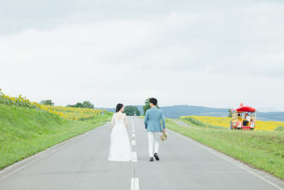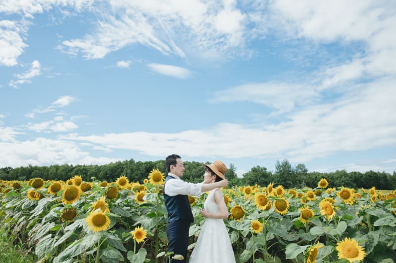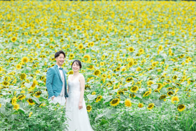 ひまわりに負けないくらい笑顔いっぱいな雰囲気や、道路を使っておしゃれな今どきなお写真まで!