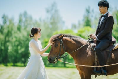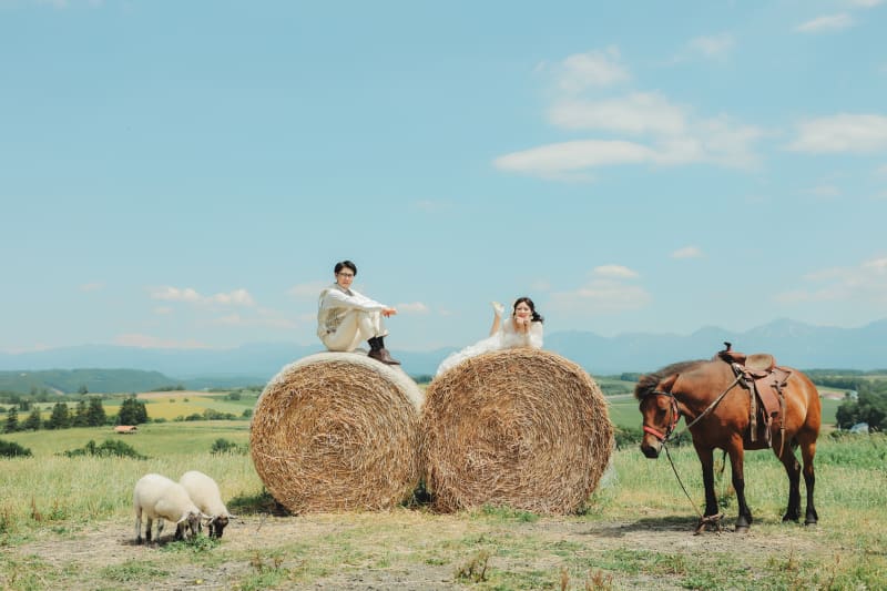 北海道・美瑛にある「ファームズ千代田」では、とにかく自然が美しく。羊や馬と一緒に撮影もできちゃう。