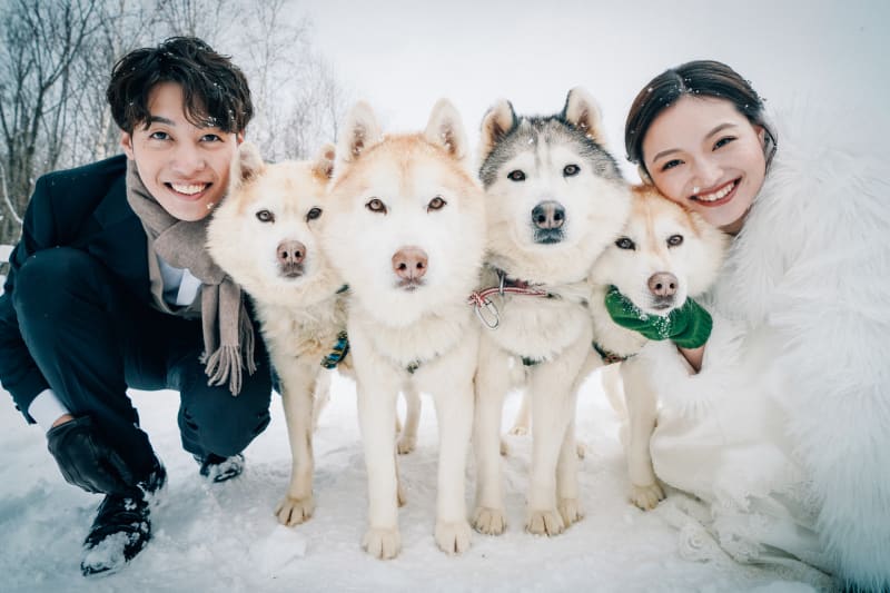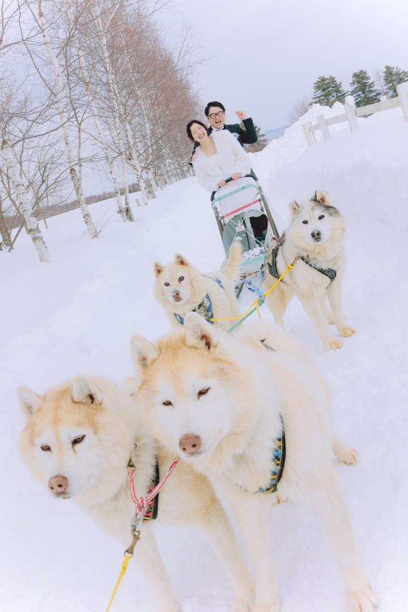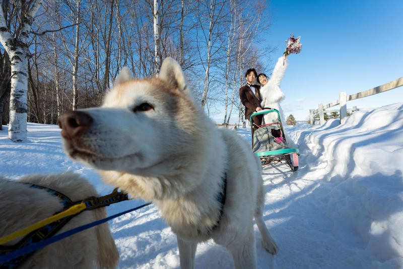 犬好きさん必見!もふもふハスキーちゃんと犬ぞり×ウエディングフォト!!