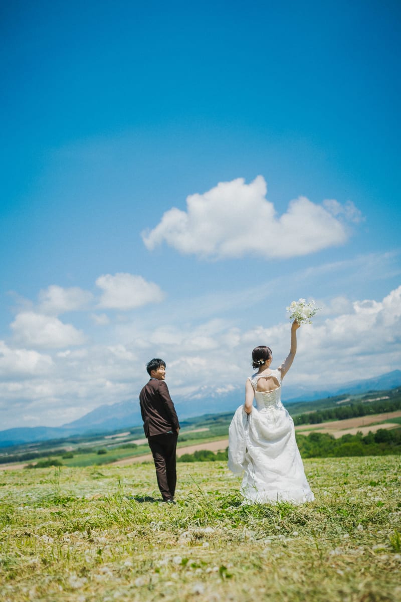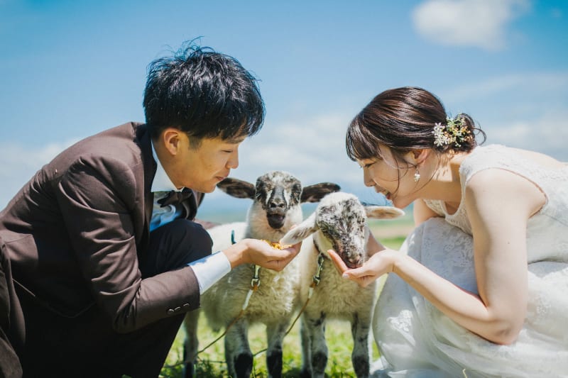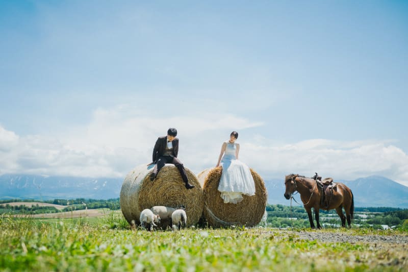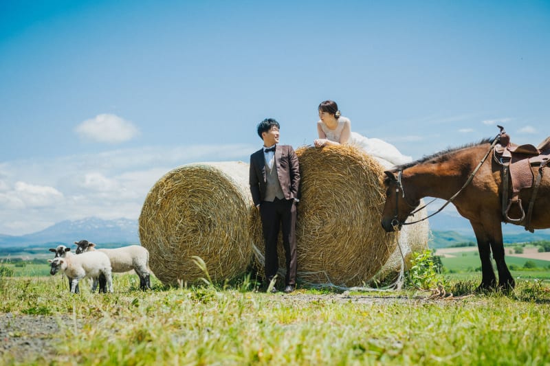 牧場でのびのびと撮影を楽しんでいるお二人✨