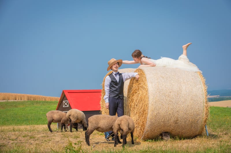 ということで、「ファームズ千代田」さんにて牧草ロールとひつじさんとの写真を楽しんでいただきました🐏