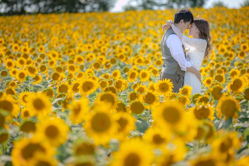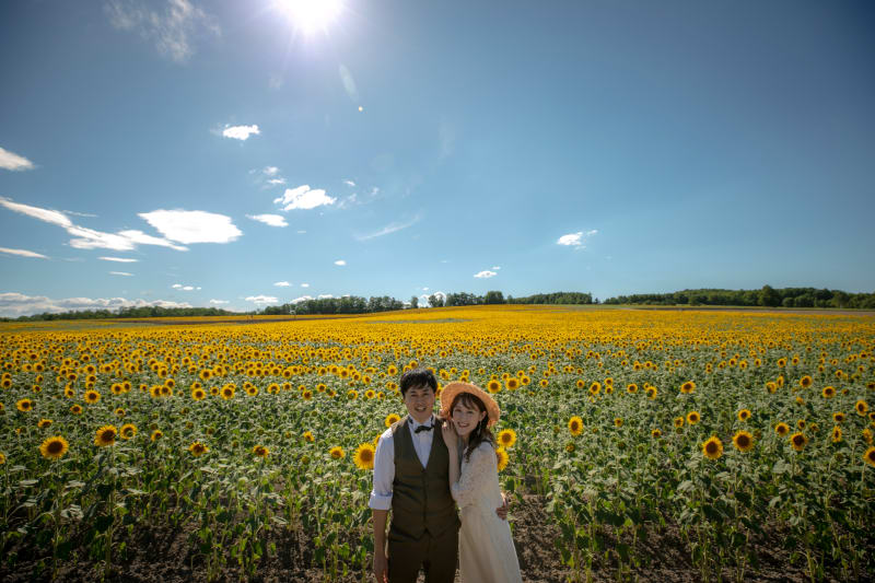 【北海道の大自然で最 高のフォトウェディングを残しませんか!?】️ヒマワリでの撮影ご検討の方、このロケーションで撮影するのは間違いありません!!