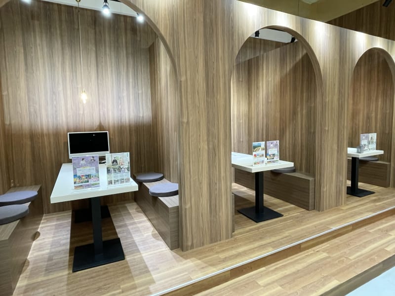 まず接客ブースです✨木を基調にした温かめなブースになっており