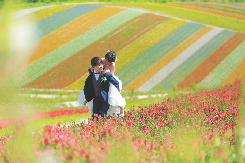 8月が見頃!四季彩の丘とフラワーランドでカラフルなウェディングフォト🌻