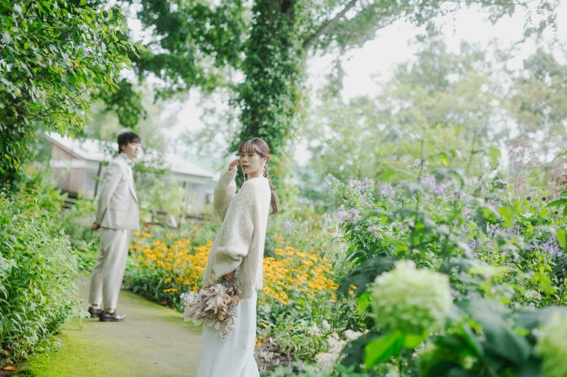 北海道ならではの植物や美しい大雪山系の山々をバックにウェディング撮影✨