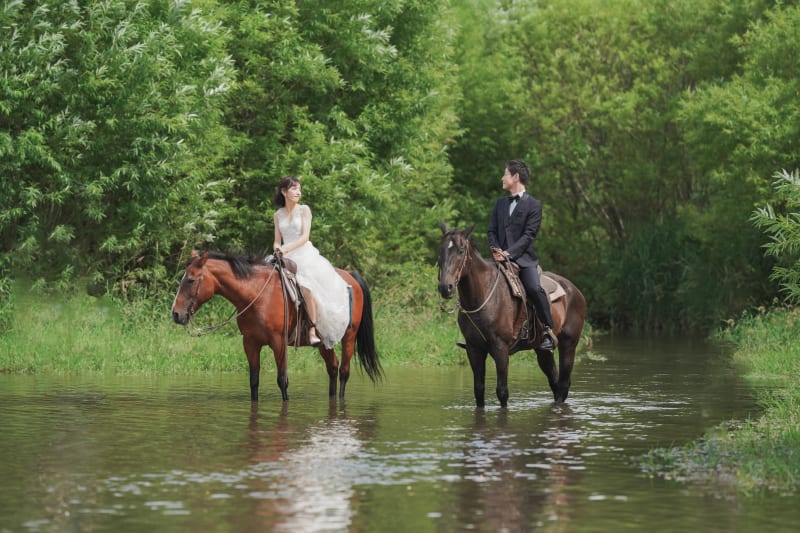 ウェディングフォトを撮影しながら、本格的な乗馬を体験できちゃいます!