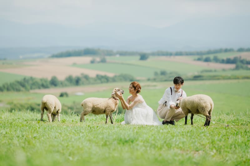 可愛い羊や馬がお二人の撮影を盛り上げてくれるのはもちろんですが、