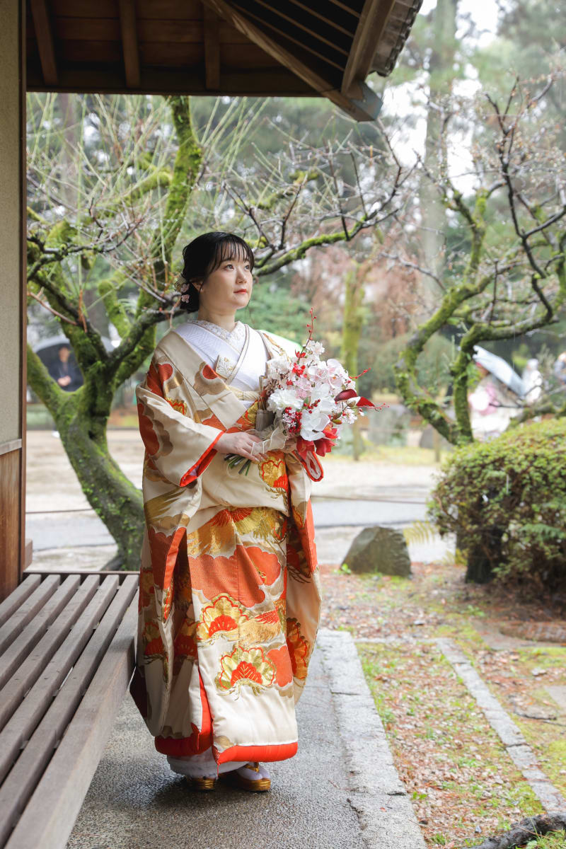古典的な雰囲気の色打掛をお召しになりましたが、あえて今っぽいツインのようなヘアスタイルにされたことで、そのバランス感がとってもおしゃれでした✨