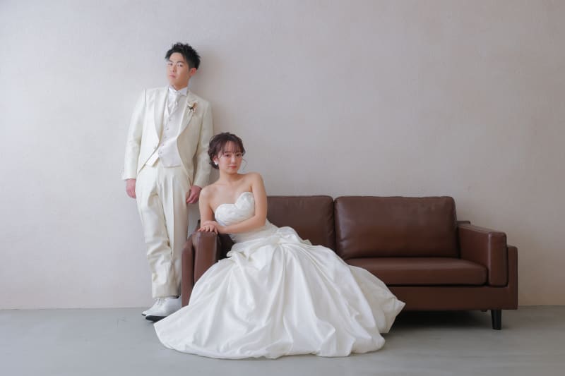 シンプルな背景でソファーを使ったポーズも♪