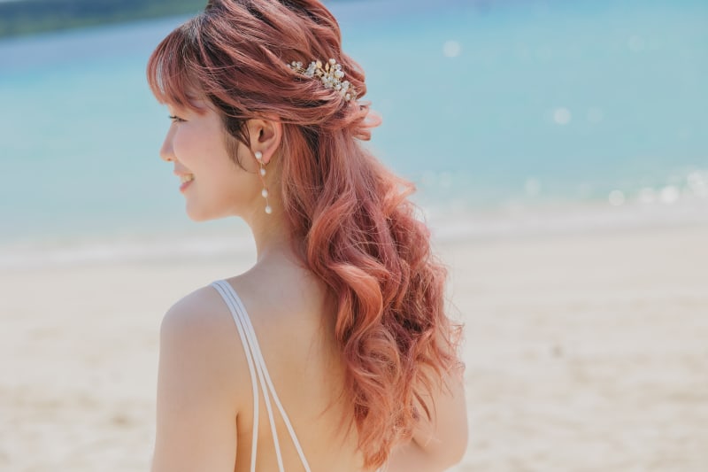 今回は海でロケーション撮影された方のヘアスタイルをご覧いただきたいと思います。