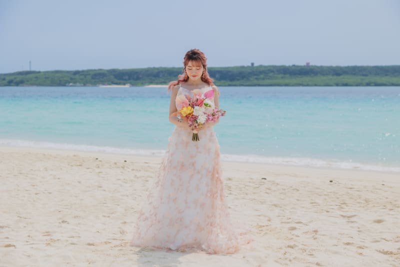 お選びになったドレスが白ベースにピンクの色味が入ったもので、