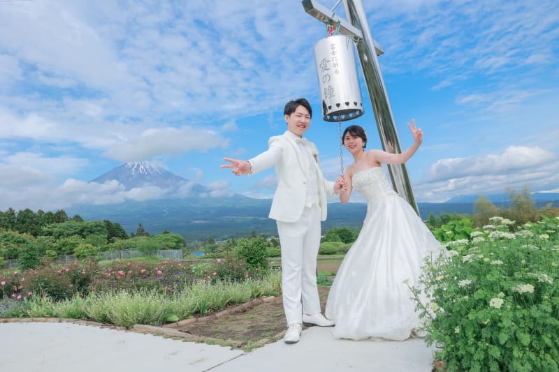 天候にも恵まれ、富士山とお二人の素敵なお写真を残すことができました。