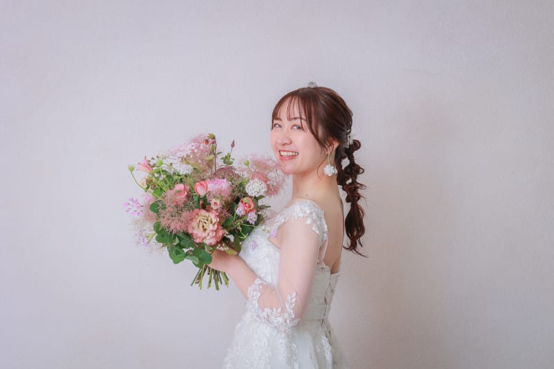 お持ち込みいただいたブーケとおふたりのコーディネートの組み合わせがとってもかわいかったです✨