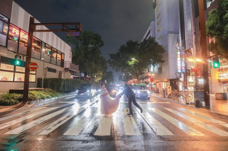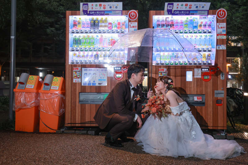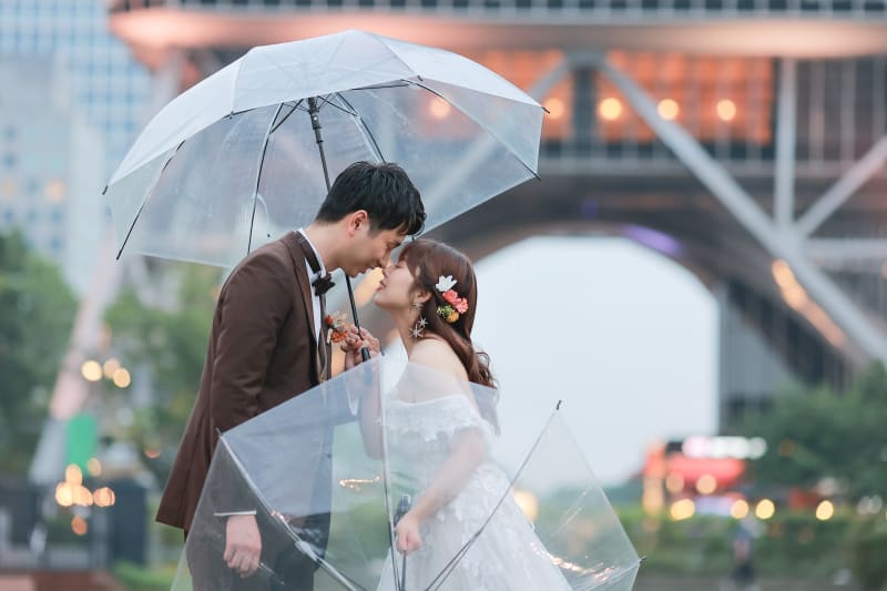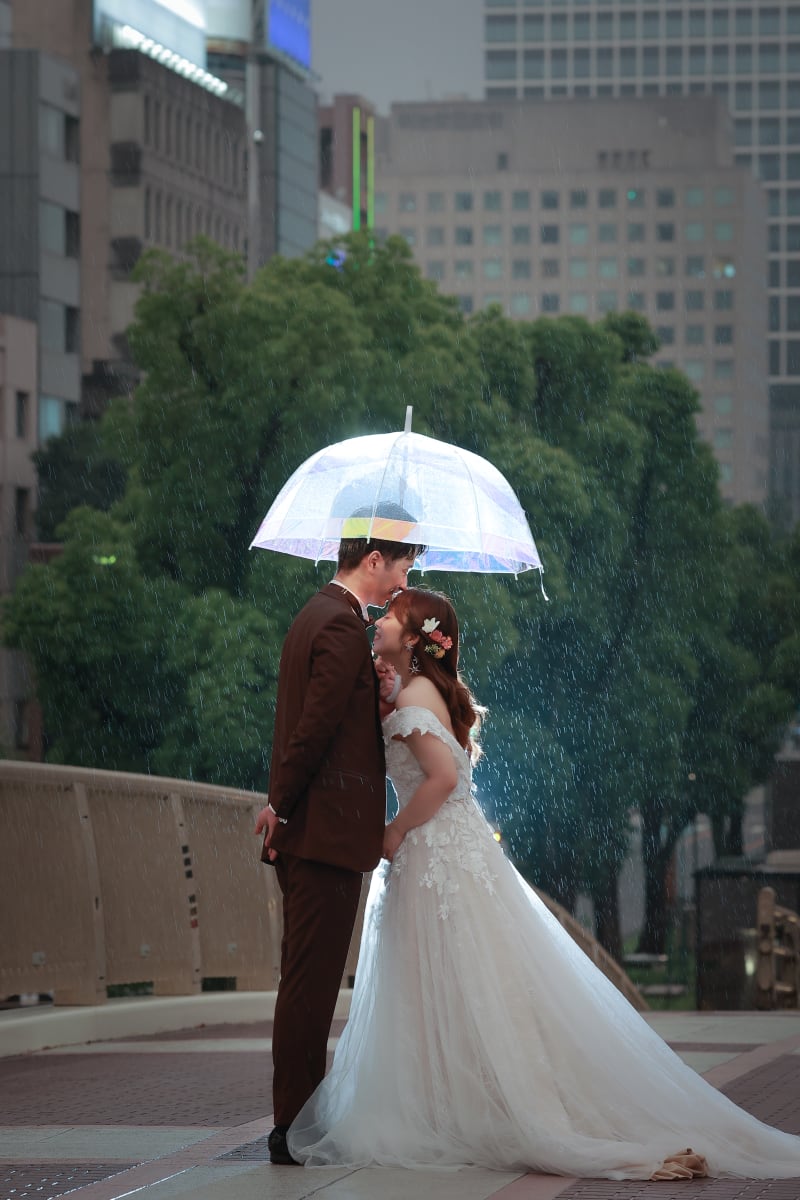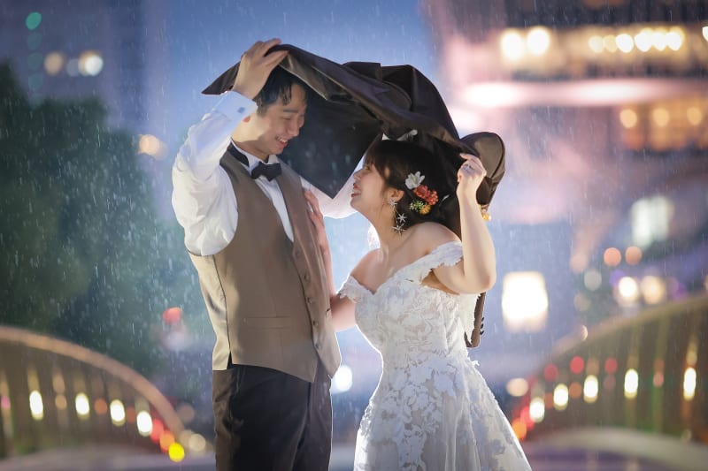雨の中の撮影は過酷なこともございますが、プロカメラマンが幻想的に、ロマンチックに撮影してくれますよ♪