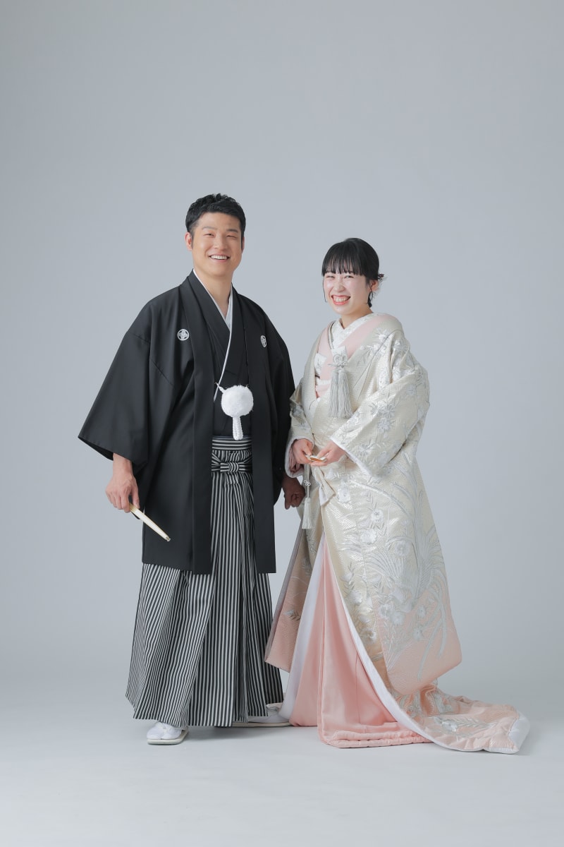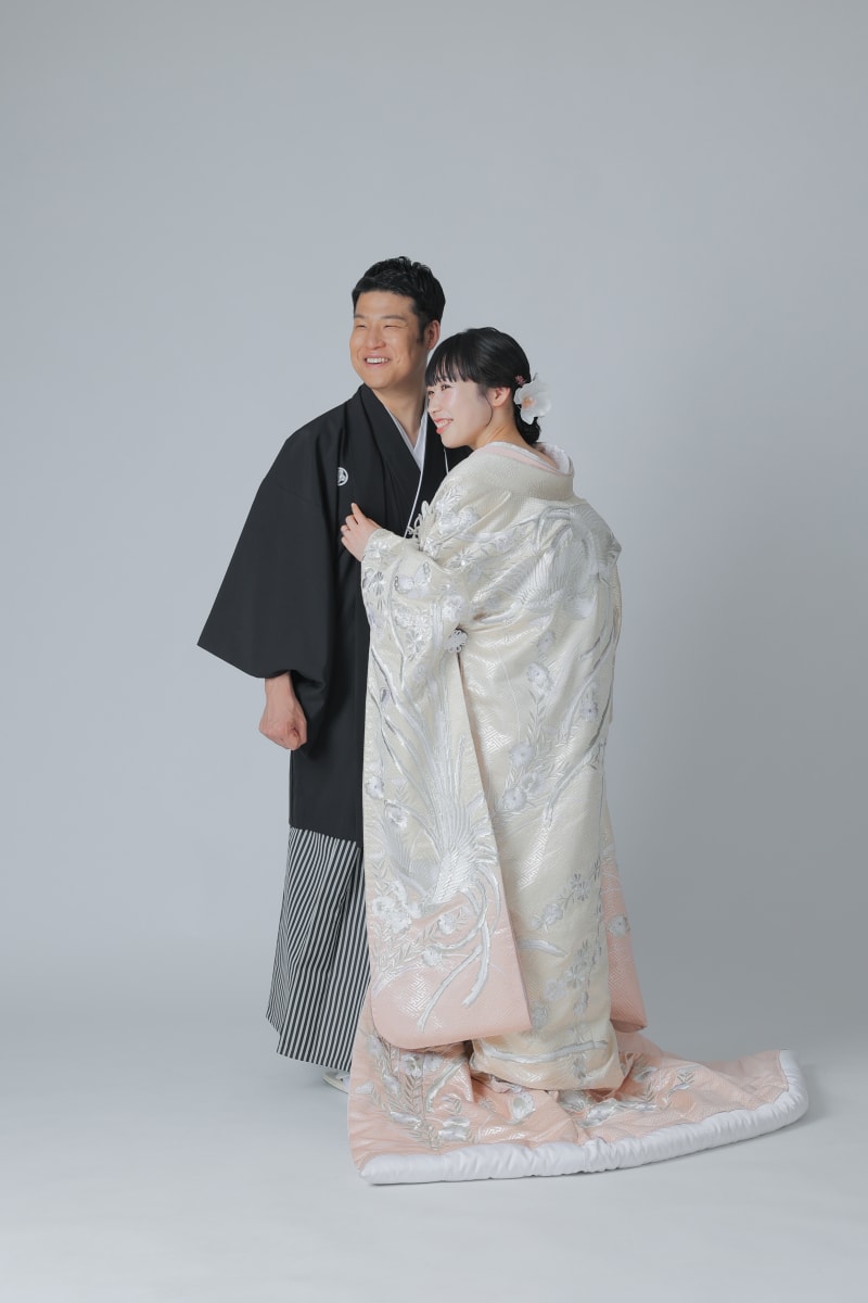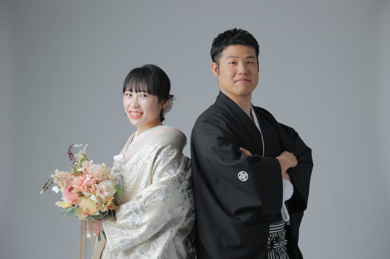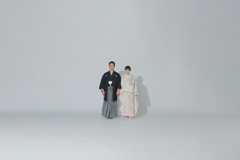 シンプルな背景紙ですが、お二人らしいお写真を!