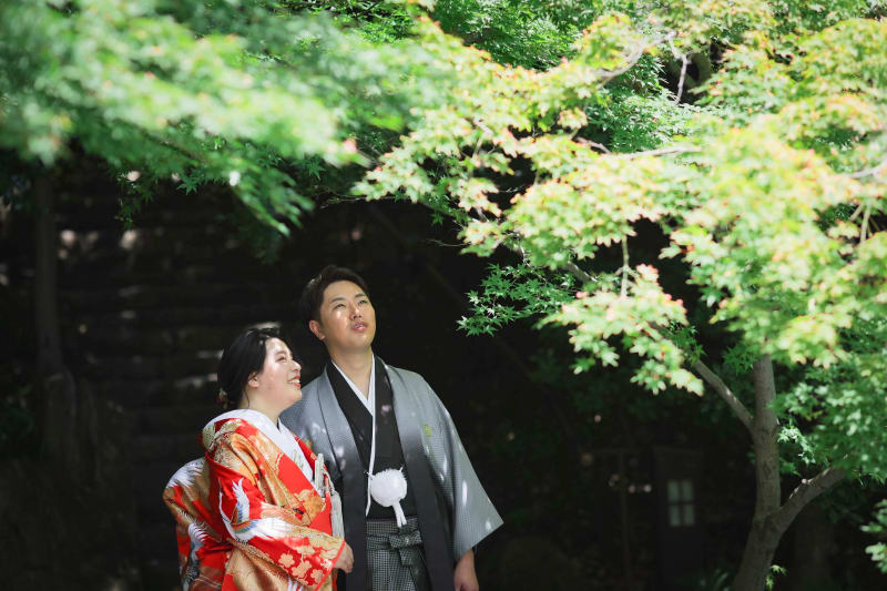 夏の日差しに照らされた葉と優しい木漏れ日。 徳川園では涼しげで時間がゆったりと流れる写真を残すことができます。