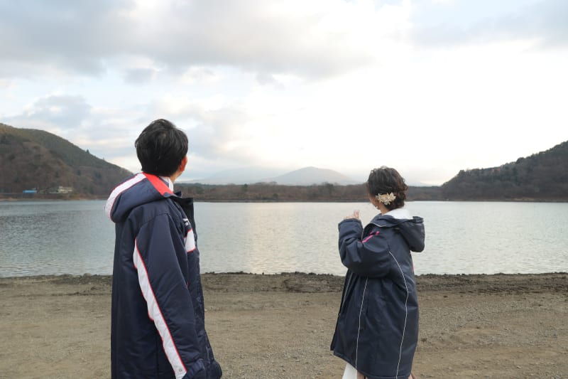 富士店でお支度後、車で富士山が綺麗に見える湖まで移動します。