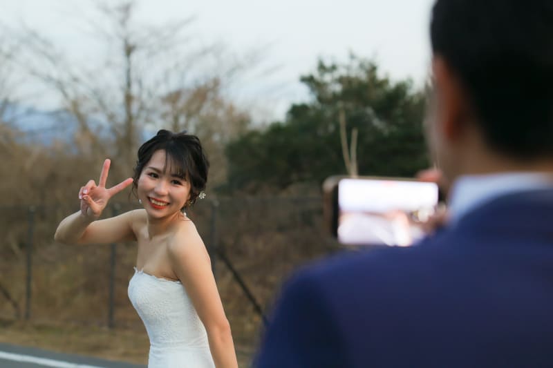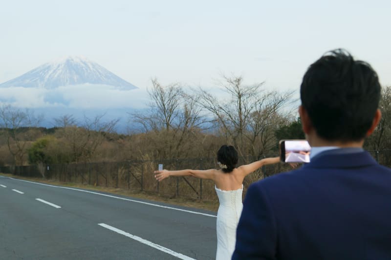 この日は富士山の周りで和装と洋装の撮影をしました!