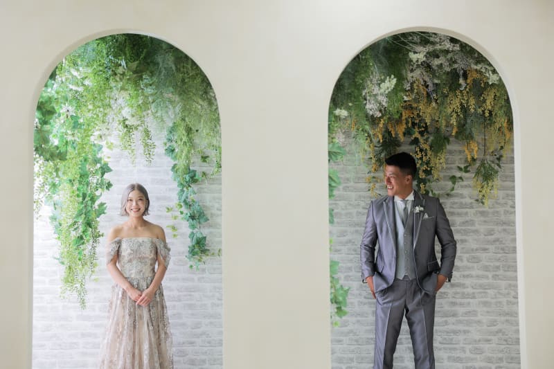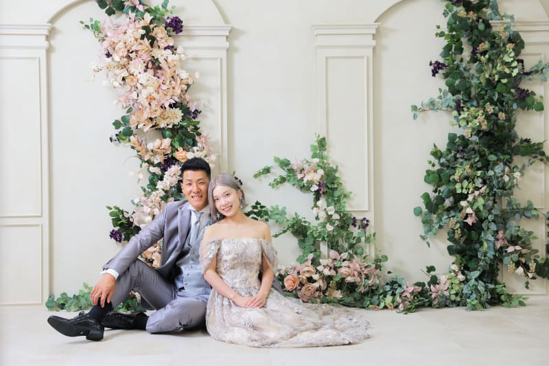 お花の背景では可愛い雰囲気でグリーンの背景では少し大人綺麗目な雰囲気でも撮影できるのでおすすめです!!