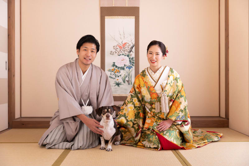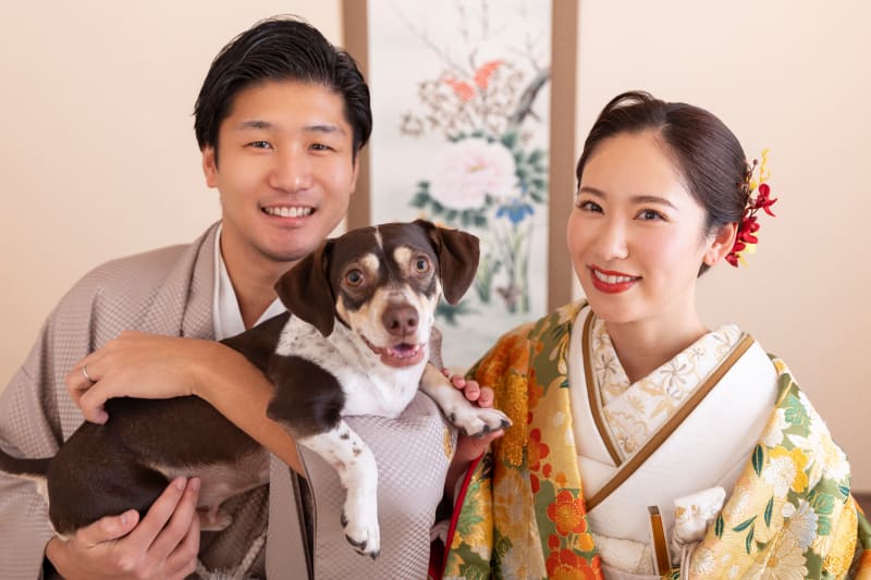 今回はわんちゃんと一緒に屋内庭園スタジオで撮影されたお客様のご紹介をさせていただきます。