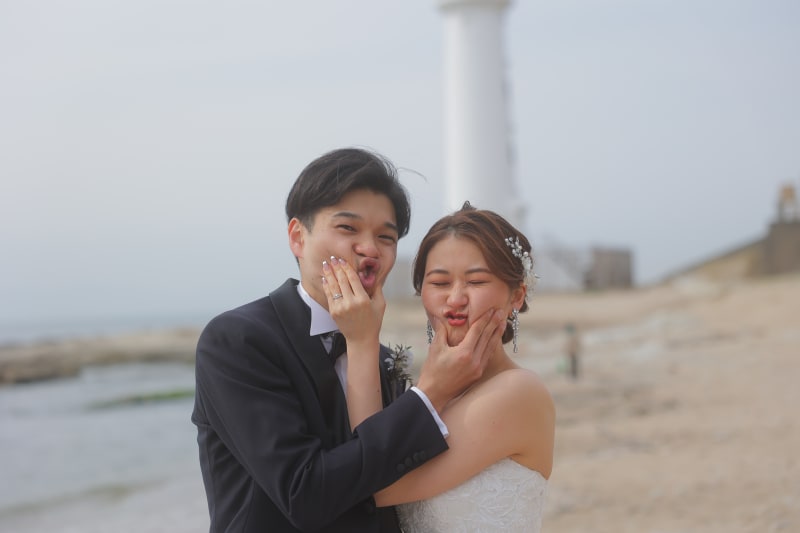 今回撮影されたおふたりは、海ロケーションとスタジオ撮影を組み合わせ
