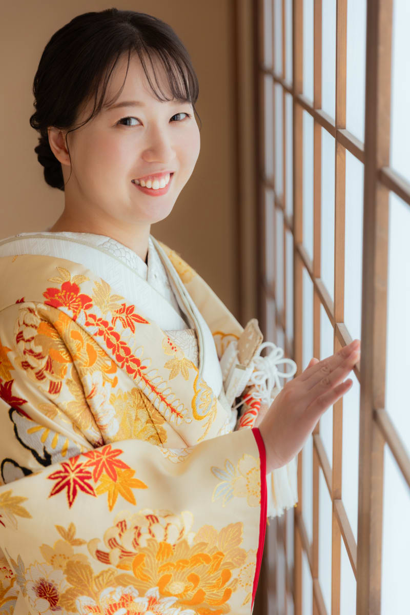 スタジオ内にあるお茶室のなかで新婦様ソロカット! とても品のある美しい新婦様。