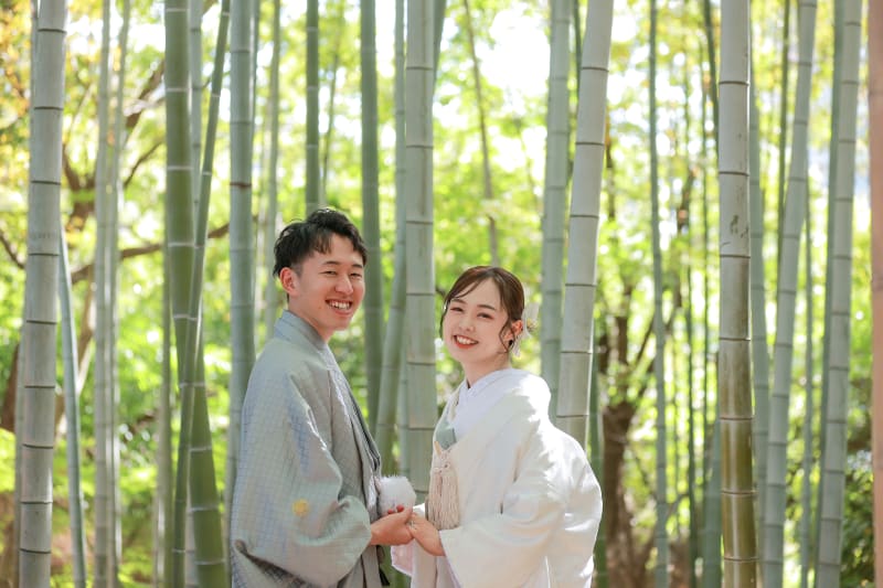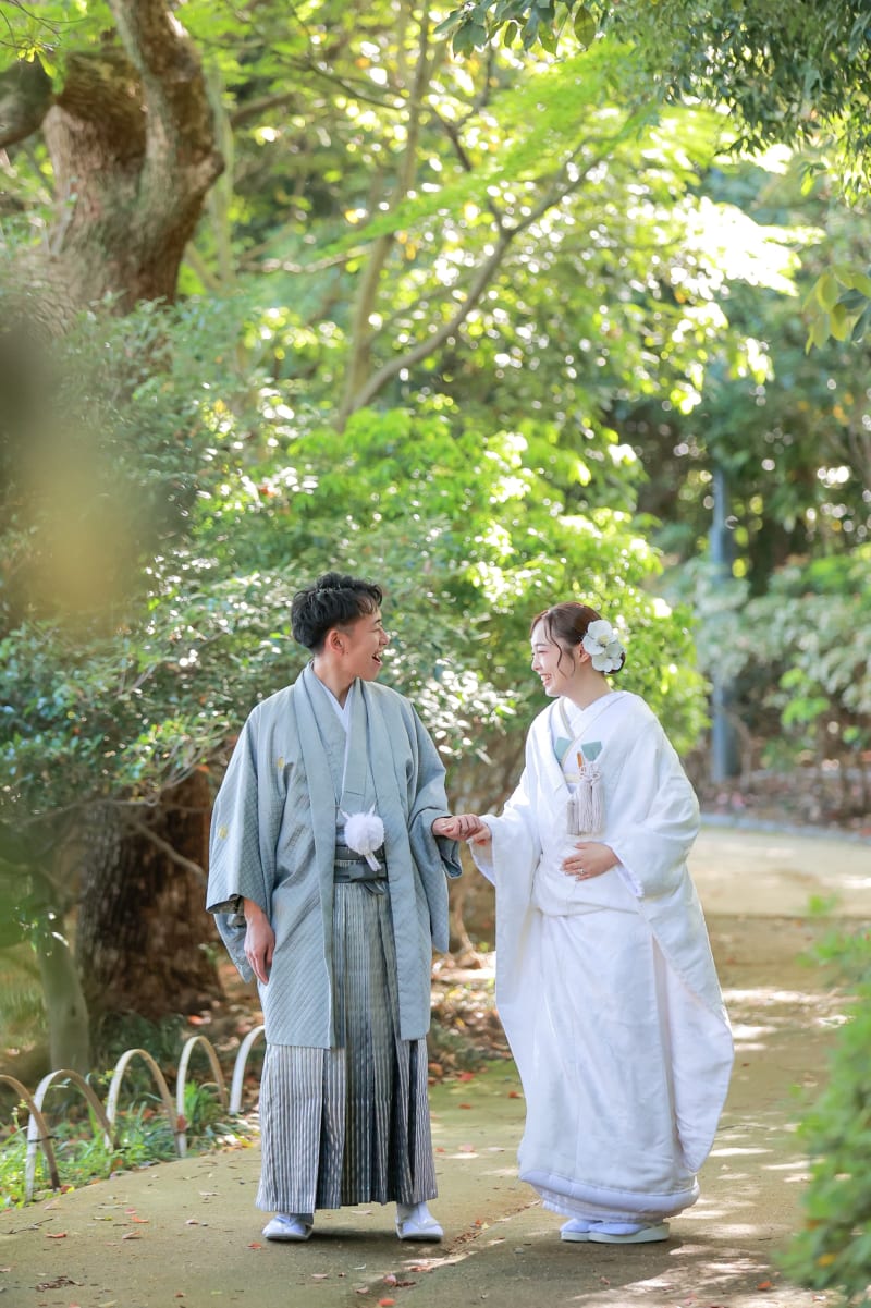 初夏の新緑がとても美しく、白無垢との相性が抜群!