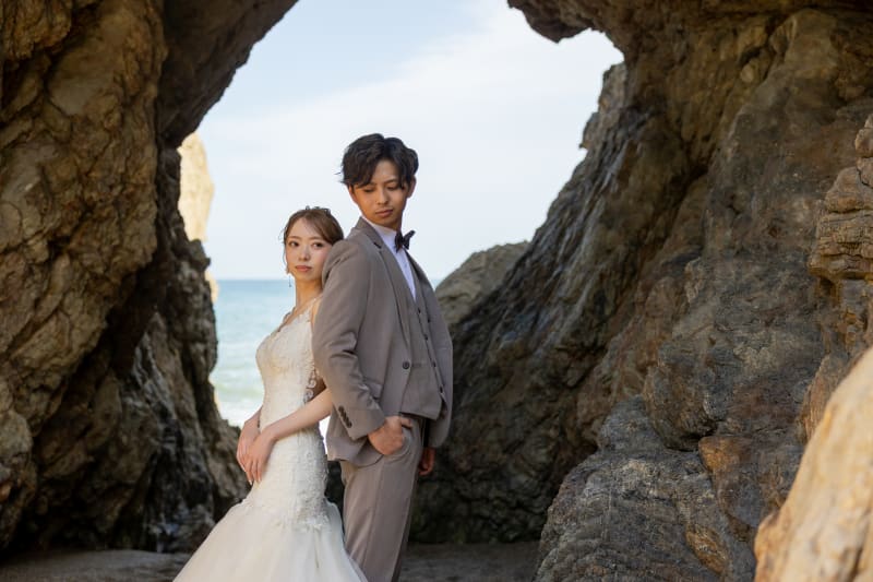 伊良湖岬は岩場や崖があるので海の中でも大人っぽく落ち着いた印象でオシャレなお写真をお撮りいただけます!