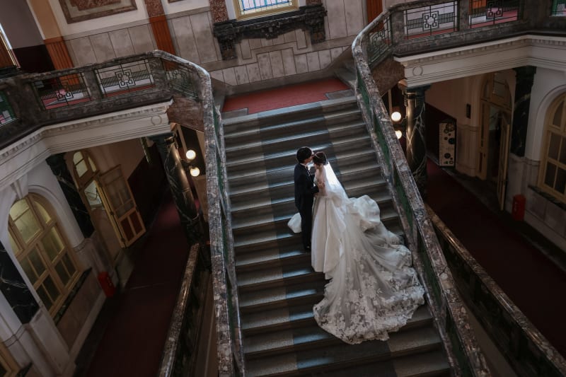 新婦様はインポートのダイナミックなうウェデングドレスに、