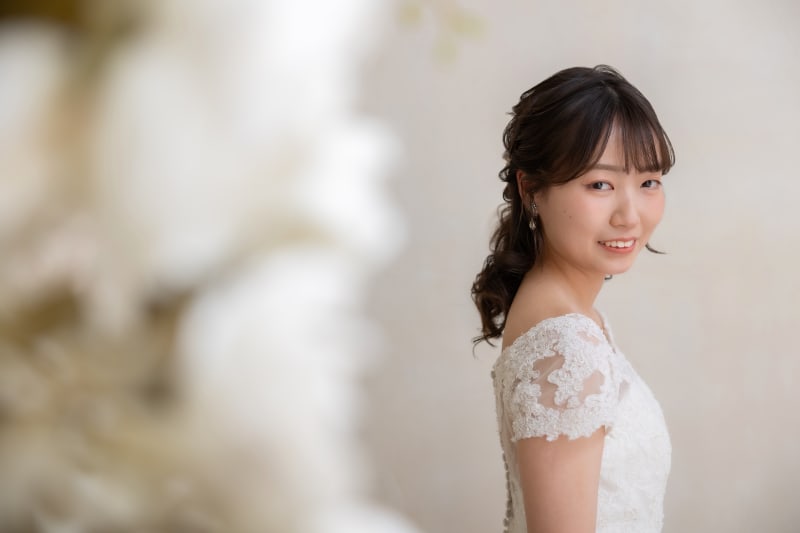 衣装に合わせてヘアメイクを変えることで、1日の中でもいろんな「私らしさ」を楽しめるのが前撮りのいいところ。