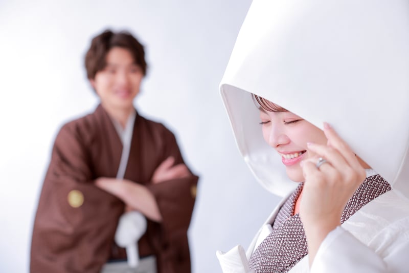 白無垢に憧れを持っている方は多いと思いますが、最近ではよりかっちりとした姿を写真で残したい!と綿帽子を付けられる方も増えてきました。