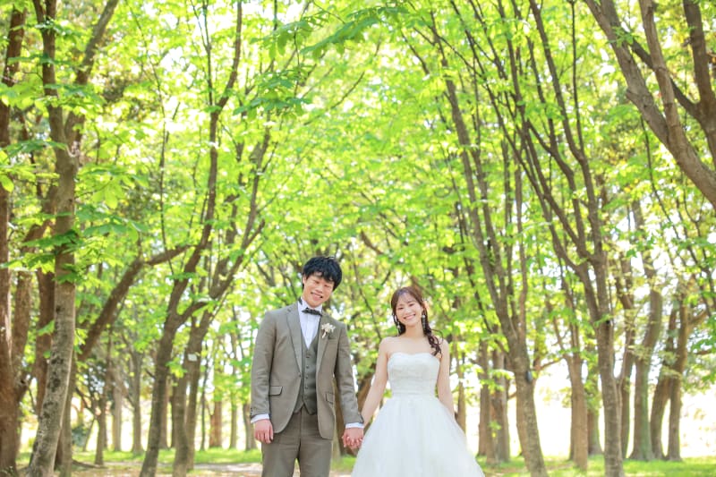 緑あふれる公園での撮影は、自然体なふたりを残したい方にぴったり。