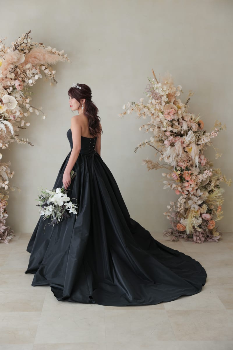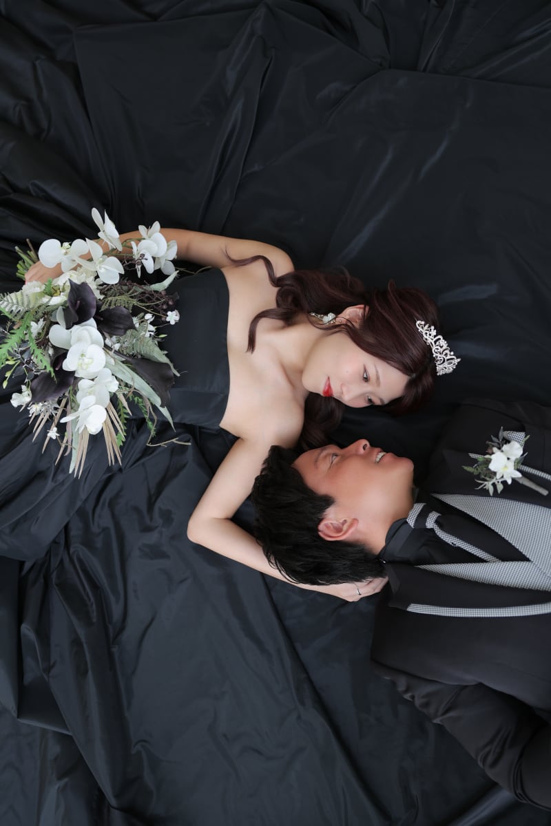 ドレスの上に寝転がる希望があったのですが、写真全体が真っ黒になってかなりシックで大人な雰囲気です!