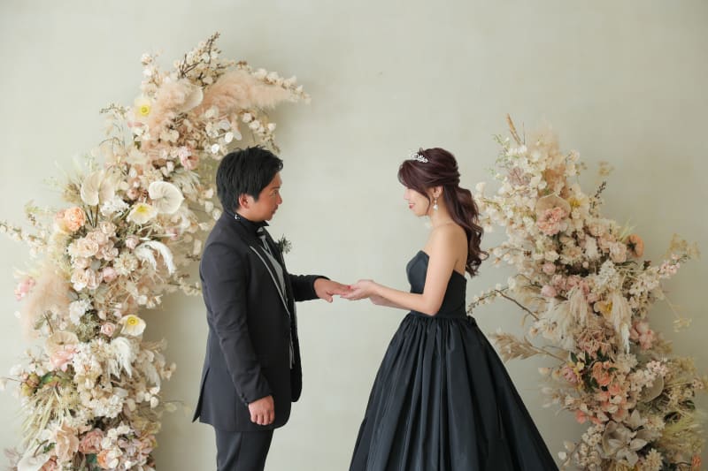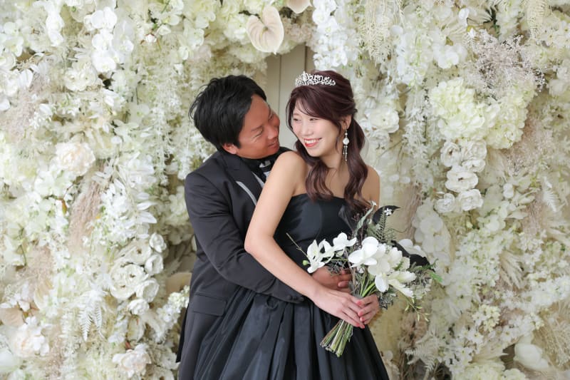 白いドレスだと埋もれた感じでかわいいくなるのですが、ブラックのドレスだと浮き出た感じでお二人が引き立ちますね!