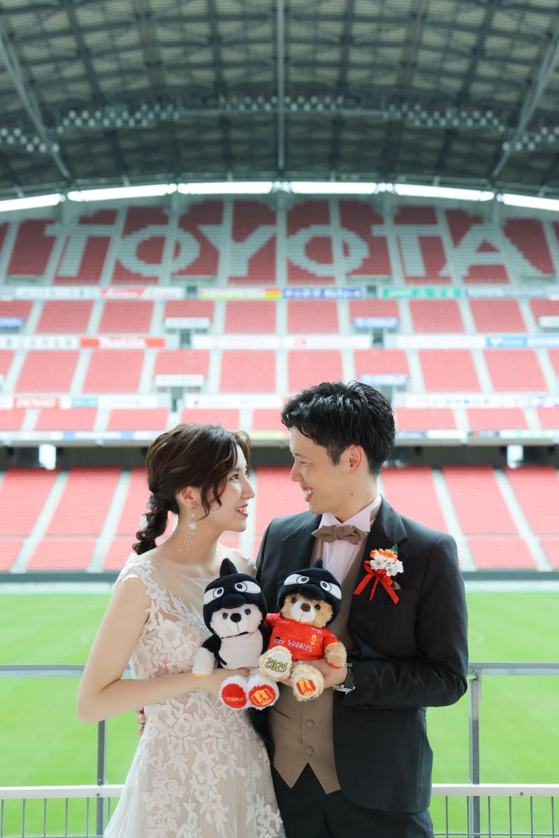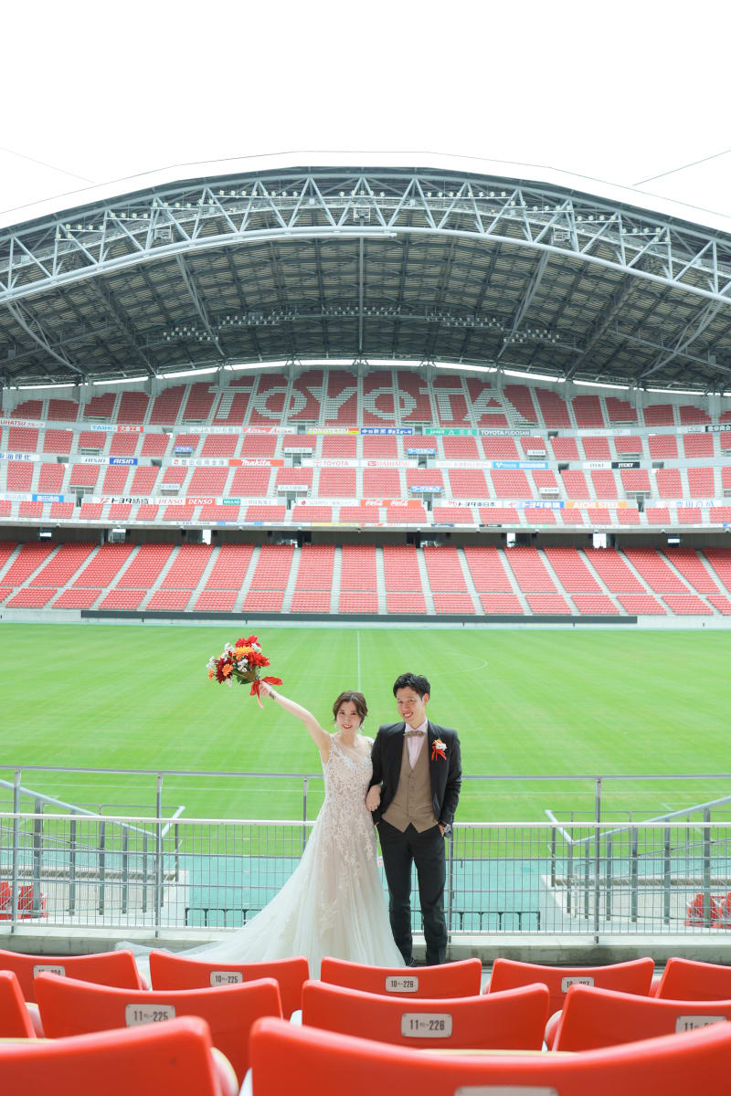 特にサッカー好きな方にはたまらない、豊田スタジアムを借りての撮影です!