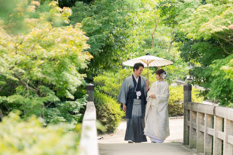 ほんのり色味を差すことで、シンプルな中にも立体感と奥行きが生まれます。新郎様の袴とも色をリンクさせれば、統一感のある写真に。
