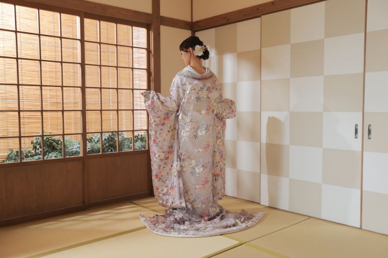和装でありながら、重たく見えず、軽やかで女性らしい印象に仕上がります。