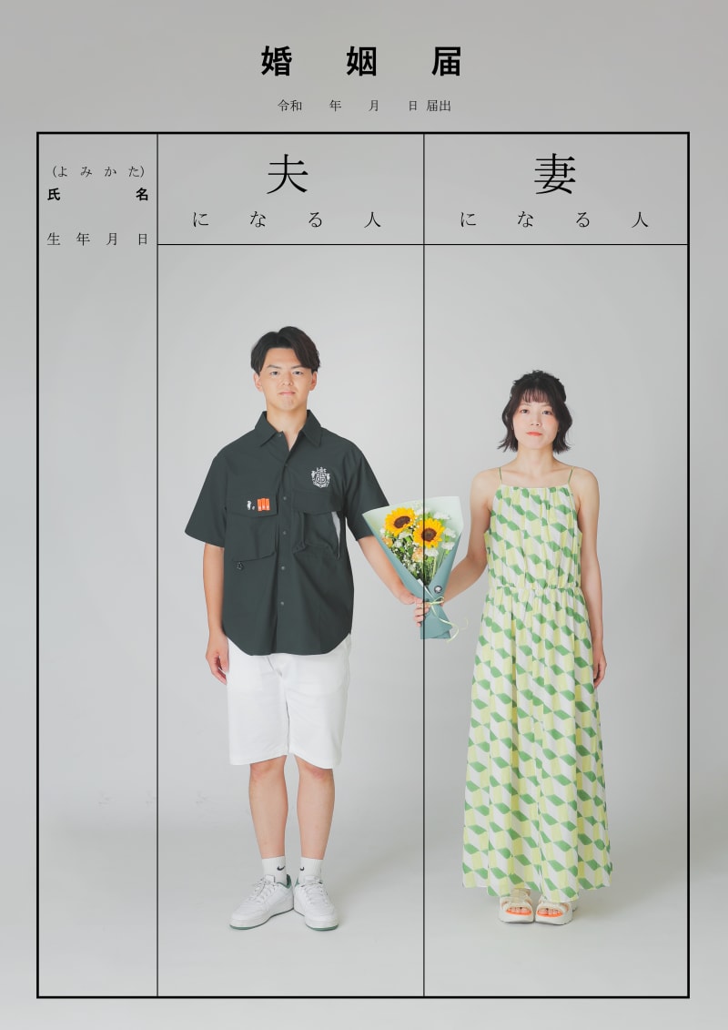 遊び心とぬくもりを感じる入籍フォト。おふたりらしい笑顔がぎゅっと詰まった、大切な1日になりました🌻