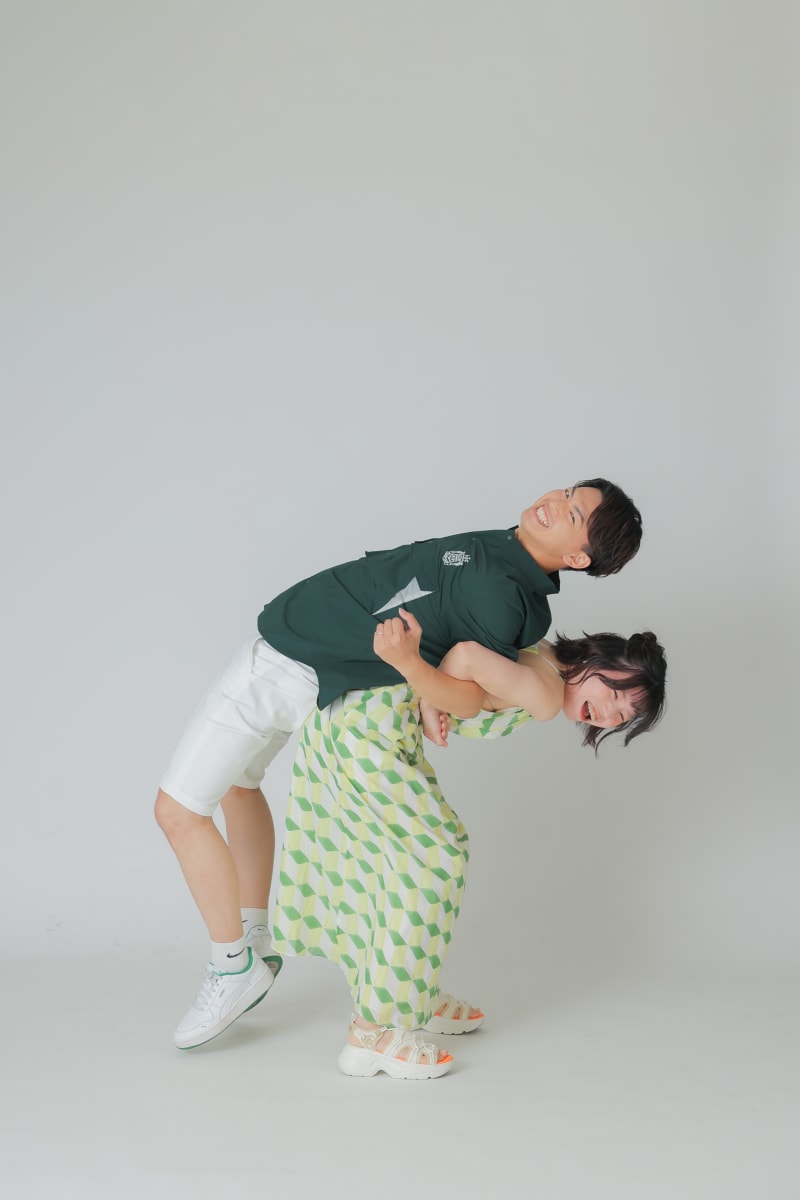 グリーンのリンクコーデに、カジュアルで柔らかい笑顔。見ているだけでこちらまで幸せになるような撮影でした☺️