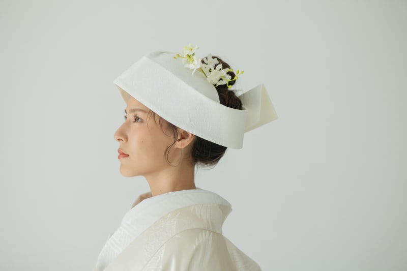 角隠しは、白無垢や色打掛に合わせて身に着ける花嫁の伝統的な装いのひとつです。