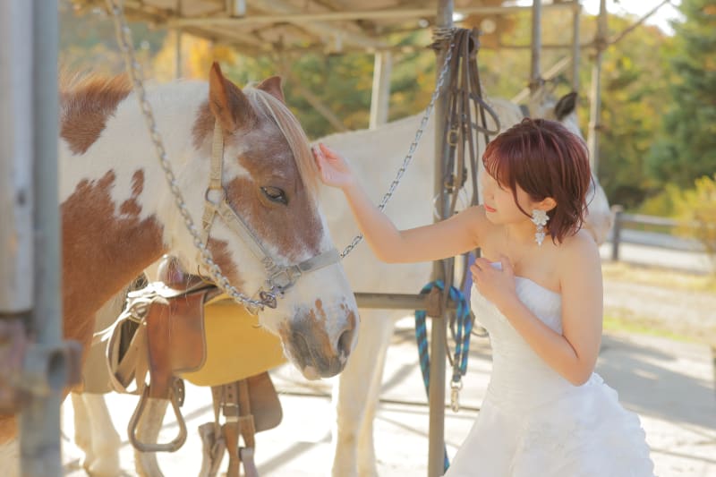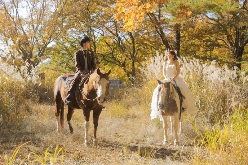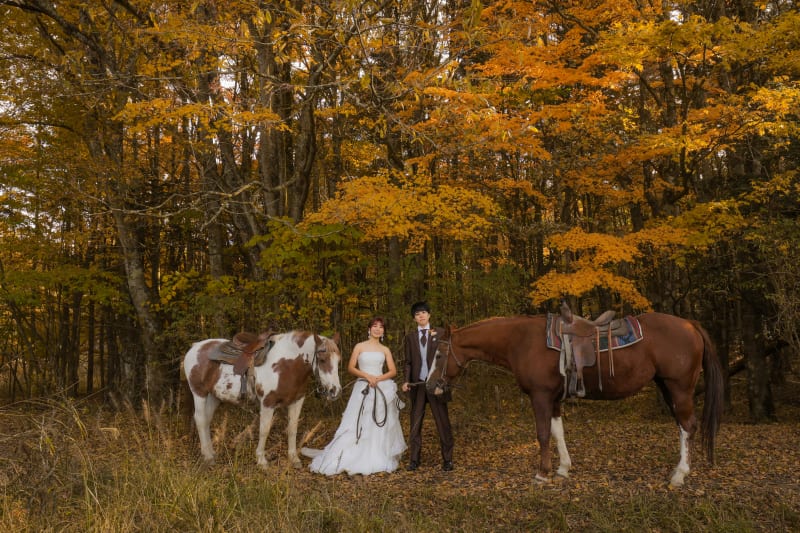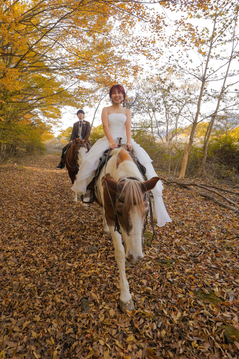 富士山近くで乗馬撮影