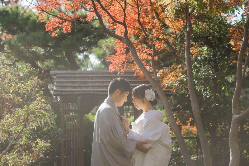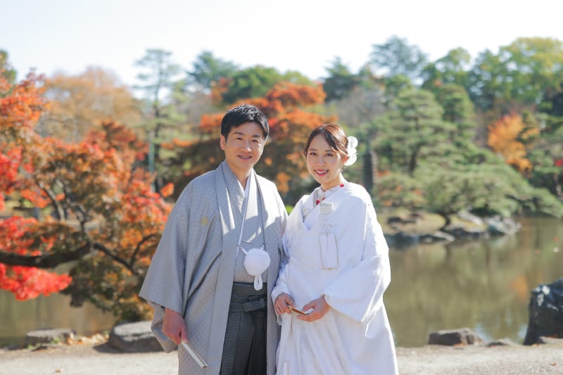 鶴舞公園で和装のロケーション撮影していただいたおふたりのお写真をご紹介いたします。